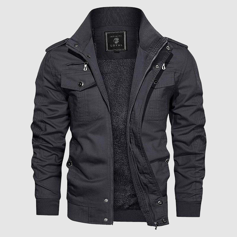 On cooler days, opt for this stylish jacket and relish in delightful warmth and comfort. Inspired by the classic pilot jacket, it features a modern twist, fleece lining, and zip-up front with dual chest pockets. Goes perfect with denim jeans for a refined casual look.